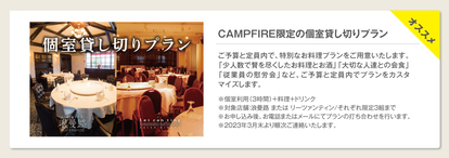 CAMPFIRE限定の個室貸し切りプラン