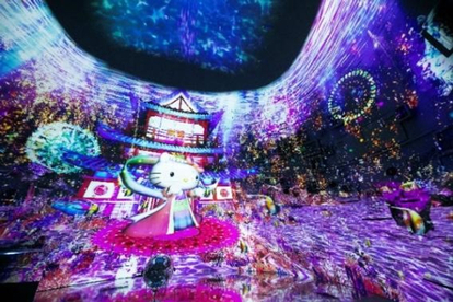 乙姫のハローキティと海の生き物が行き交う幻想的な竜宮城を表現したメディアアートエリアと2か所のレストランが併設。メディアアートエリアは8つに分かれ、海中を漂うような体験ができる 水中洞窟、水反射を表現した鏡迷路や巨大万華鏡など、竜宮城へ誘われる非日常的な空間を演出しています。また、レストランでは、淡路島産の食材にこだわった身体に優しい健康的な一人鍋や、瀬戸内の海で採れる新鮮な海鮮グリルや飲茶などを提供し、播磨灘の景色を眺めながらゆったりとした時間をお過ごしいただけます。