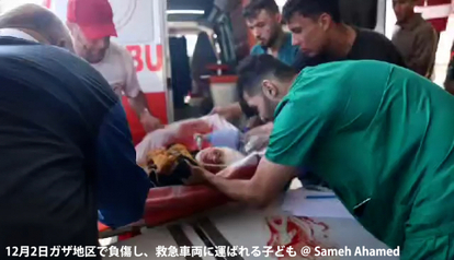 【パレスチナガザ地区からはタンカーで運ばれる負傷した子どもや逃げ纏う人々の姿が】