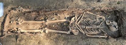 ドイツ北東部ザクセンアンハルト州クヴェードリンブルクにあるこの墓は、刑場跡で発見された16基の墓のうちのひとつだ。
