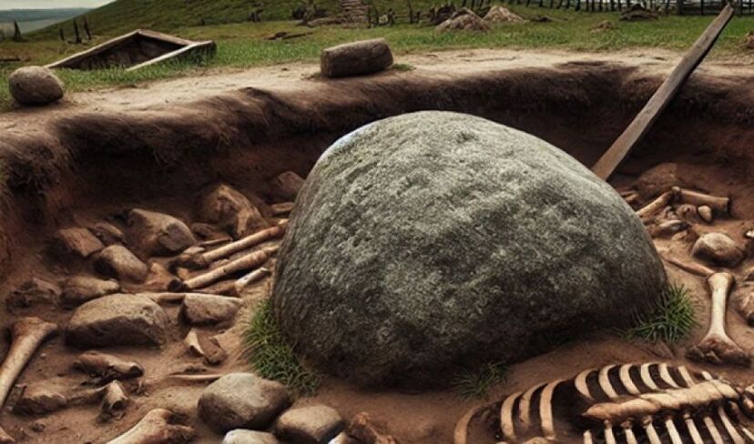 ドイツにある17世紀の絞首台周辺の発掘で、胸の上に大きな石を乗せられて埋葬された男性の遺骨が発見された。