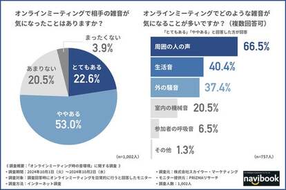そこで今回、株式会社スカイウー・マーケティング(https://navibook.co.jp/)は、オンラインミーティングを日常的に行う方を対象に「オンラインミーティング時の音環境」に関する調査を行いました。