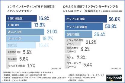 週に1回以上オンラインミーティングをしている方が8割以上で、1日に1回~複数回している方も約3割いることが明らかになりました。