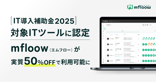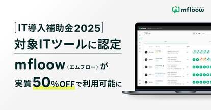 株式会社メタップスホールディングス(渋谷区、代表取締役社長 山崎 祐一郎)が提供する従業員ライフサイクル管理ツール「mfloow(エムフロー)」が「IT導入補助金2025」の補助対象ITツールとして正式に認定されました。これにより「mfloow(エムフロー)」を新規導入する対象事業者は導入費用の1/2の補助金を活用することが可能となります。