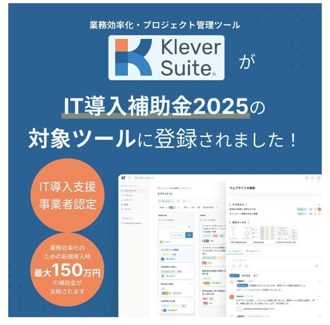 株式会社Tokyo Techies(本社:東京都、代表取締役:ドバ ドゥック)は、当社が提供するSaaS型プロジェクト管理ツール「Klever Suite」が、経済産業省が推進する「IT導入補助金2025(IT導入支援事業)」の対象ツールとして正式に認定されたことをお知らせいたします。