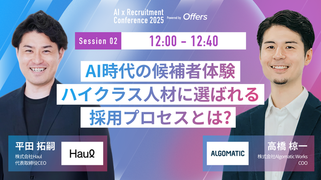 7月23日開催『AI 採用 カンファレンス 2025』、採用活動セッションをご紹介|Algomatic Works 高橋氏、Haul 平田氏ご登壇