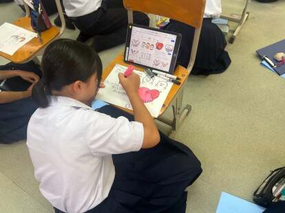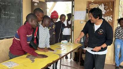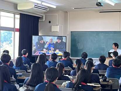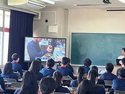 世界で自分たちの教材が活用された様子を学ぶ守谷高校生徒