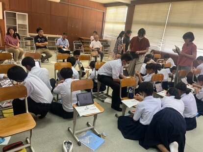 長崎県の対馬西部中学校では、地域の歴史と平和の願いを題材にした「平和カルタ」を制作し、世界の子どもたちと平和について考える教材として活用しています。愛知県の名古屋市立扇台中学校では「防災カルタ」を開発し、災害の教訓を遊びながら学べる形にし、海外の防災教育にも展開されています。