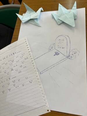 シリアからの手紙、折り鶴を受け取る守谷高校生徒代表