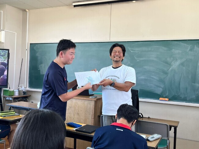 「生徒たちが作ったカルタが、遠い国の子どもたちの役に立っていると聞いて、生徒たちは大変驚いていました。シリアから届いた手紙を読むことで、平和を願う気持ちは国境を越えて共通なのだと実感しています。県立高校からこうして世界へ発信できるプログラムは本当にありがたいものです。その効果として、夏休みにフィリピンへ留学し現地でボランティアを体験した生徒も現れました。彼は『2学期はこの世界とつながる学びに、ますます力を入れて頑張りたい』と意欲を語っています。このプログラムは、これまでの学校教育では実現が難しかった“グローバルの壁”を生徒たちに越えさせてくれる貴重な機会だと感じています。」