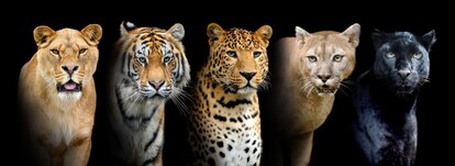 4段目:アビシニアジャッカル(C. simensis)、アフリカンゴールデンウルフ(C. lupaster) Credit: Chris Muiden, Tobycat, Tim Ross, Michael Runtz, Justin Johnsen, Davidvraju, Charles J. Sharp, Profberger