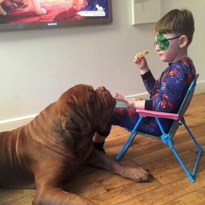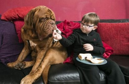 イギリスのサウスラナークシャーに暮らすキャノンさん一家には、5年前にボルドー・マスティフ種の犬、アルフィーを飼うことになった。その直後に男の子の赤ちゃん、マーク君が生まれ、一緒に育った両者は離れられない仲となった。