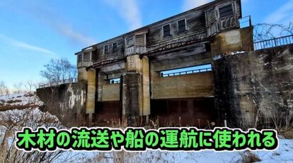 この水門は開閉によって流量を調節し、木材の流送や船の運航に使われる予定でした。しかし10年の歳月は社会が変わるのに十分な時間。物資の輸送は船から鉄路となりました。水運に関しても旧水路の水位が下がって船の運航が困難となり、新水路がメインで使われます。こうしてこの水門は使われなくなり閉鎖。開かずの水門と呼ばれるように。1985年には新しい水門が建設され、役目を終えました。