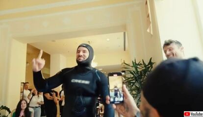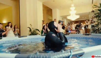 - 水を差すようだけど、彼は飛び込む直前に10分間ずっと純酸素を吸っていたんだ。チートじゃないかもしれないけど、完全にナチュラルとは言えないよね