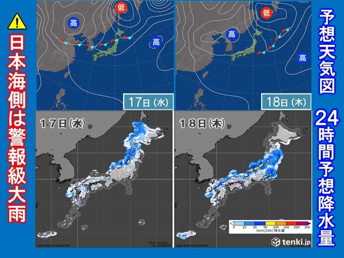 17日(水)~18日(木) 日本海側中心に大雨の恐れ