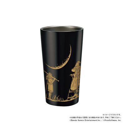 黒地に金が映える、魔女と騎士の出会いの情景がプリントされたステンレスサーモタンブラーです。