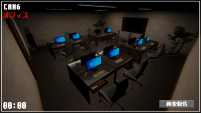 『異誕監視室 | Monativity Surveillance』は、タイピングをしながら、ゲーム内の監視カメラ映像に発生する間違い探しゲームとなっております。プレイヤーはキーボードで指定された文章を入力しながら、間違い探しをしていただきます。監視カメラ映像に発生する異変には多種多様なものがあり、普通の間違い探しから恐怖を煽るものまで様々です。キャラクターの移動といった操作はなく、カメラ操作やカメラ切り替えといったシンプルなものになっているため、遊びやすい作品となっております。プレイヤーは計5日間の異変探しに従事していただき、日にちが経つごとに様々なタスクが発生するようになっています。また複数のエンディングも用意しているため、様々な間違いを探す他に何度も楽しめるような作品になっております。