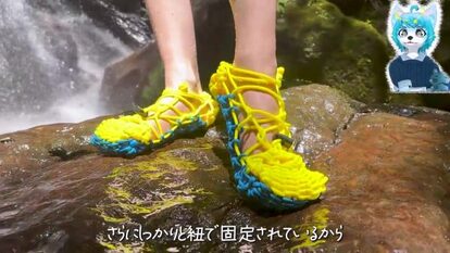 丈夫で耐久性のある紐・パラコード。これを使って、わらじを編んでみたとの動画が投稿されています。実際に川に行き、履き心地も試します。