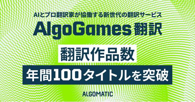 株式会社Algomatic(本社:東京都港区、代表取締役:大野 峻典、以下「Algomatic」)は、2025年9月22日、生成AI ×作品データでゲーム開発プロセスを革新する『AlgoGames』シリーズの第1弾である、AIとプロ翻訳家が協働する次世代の翻訳サービス『AlgoGames 翻訳』の翻訳作品数が、年間100タイトルを突破したことをお知らせいたします。