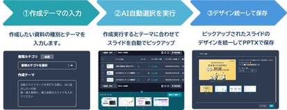 3つの操作ステップだけで、簡単にスライド資料のドラフトが作成できます。