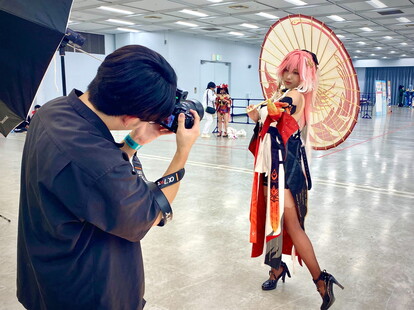 屋内の撮影エリアではオリジナルのバックペーパー(背景紙)が用意されており、コスプレしたキャラクターの魅力がより映える写真を撮ることができます。また、自由に撮影が楽しめる交流エリアもあり、撮影の合間にコスプレ仲間やカメラマンとのコミュニケーションが楽しめる様になっています。