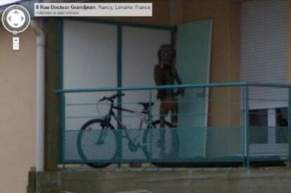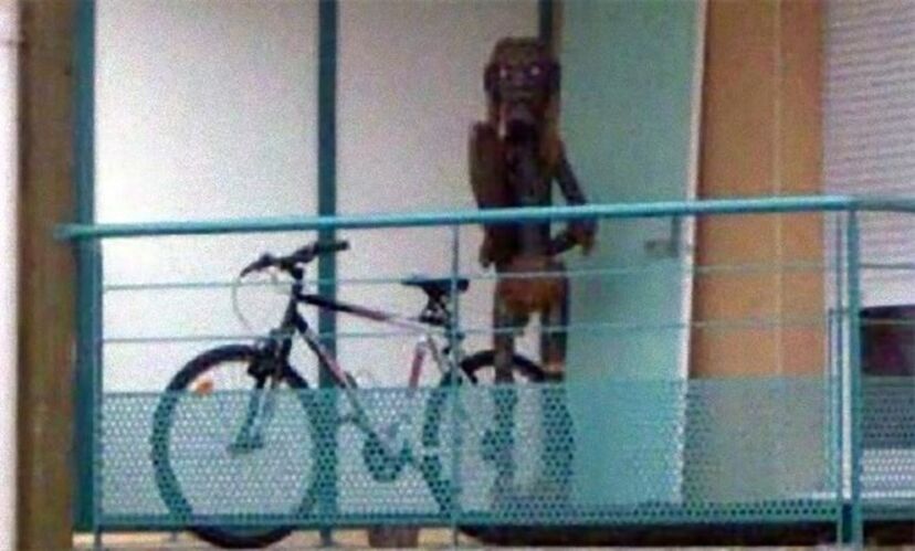 この写真はフランスのナンシーにあるロレイン地方のとある民家をとらえた物だが、バルコニーには不気味な物体が立っている。
