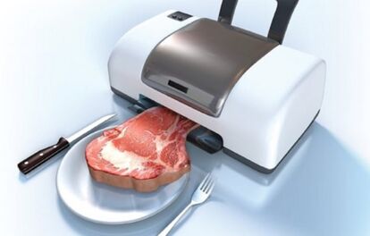 環境保護論者は常に家畜産業に異議を唱え、肉の値段は上がるばかり。ステーキを食べるのも遠慮がちだ。そこで、3Dプリンターで合成肉を作り、成功した会社がいくつかある。2012年には、モダン・メドウスという会社が、さらなる研究のために35万ドルの助成金を受け、ドイツのバイオズーンという会社は、高齢者が楽に食べることのできる軟らかい肉を人工的に作り出している。