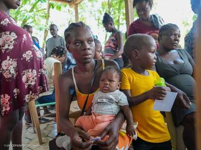 ブカン・カレにあるユニセフ支援の移動診療所で、診察を待つ親子(ハイチ、2025年5月5日撮影) (C) UNICEF/UNI792739/Joseph
