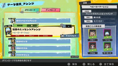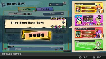 選ばなかった楽器はCPUが担当し、演奏終了後に自分のリプレイデータを保存しておけば、そのデータを使ってCPUが演奏したパートを自分でプレイし直すことも可能です。