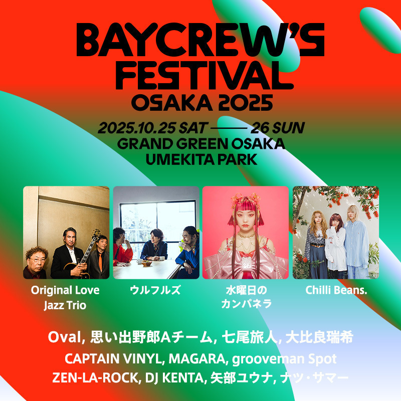 10月25日(土)・26日(日)の2日間にわたり、大阪・うめきた公園 サウスパークで開催される『BAYCREW’S FESTIVAL OSAKA 2025』から、出演アーティスト15組が発表された。