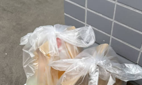 m_12ay16aさんが確認したところ、なんと地面に直接触れないよう専用の紙が敷かれていたのだとか! その上に並んだ2つの紙袋はビニール袋に入れられ、口もしっかりと閉じられていました。想像以上の丁寧さに、m_12ay16aさんも「ご丁寧過ぎてびっくりした」とコメントしています。