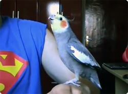 部屋にはスーパーマンのフィギア、着ているTシャツはスーパーマンと、スーパーマン好きな飼い主をよそに、しれっとスーパーマリオのテーマソングを口ずさむオカメインコのいる風景。っていうかオウムさんかなり長いフレーズ歌えちゃってるよ。