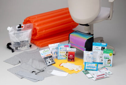 セット内容は防災士が監修し、「停電」「一時避難」「非常食」など目的に応じて最適化されている。バッグは椅子に取り付けたまま中身の出し入れができ、常に目に入る場所に置けるため、ローリングストックや薬の更新なども容易。日常生活の中で防災意識を維持しやすい設計となっている。