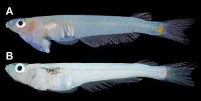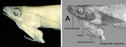 ベトナムのメコン川に生息してい、体長2センチほどのPhallostethus cuulongのオスは、生殖器や肛門を、堂々と喉の下につけている“男根魚”として有名だ。