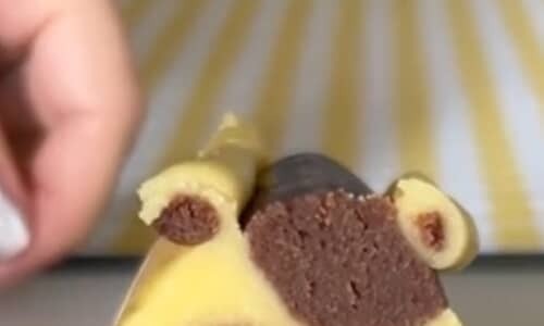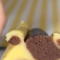 仕上がった生地を包丁でカットしてみると……そこに現れたのは、ハム太郎の原型をとどめないマーブル模様のような断面。そこで今度は糸を使って慎重にカットしてみると、ちゃんと顔の形をした断面がお目見えしました。設計図とはギャップのある表情ですが、先ほどよりも“ハム太郎感”が増しているのが分かります。