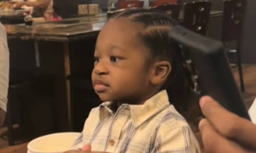 今回紹介するのは、鉄板焼きを家族で楽しんでいる動画。冒頭では、幼い男の子がハイチェアに座り、両手を組んで真剣な面持ちで鉄板を見つめています。まるで大人のように落ち着いた雰囲気を漂わせており、その姿に少しクスッと笑ってしまいます。