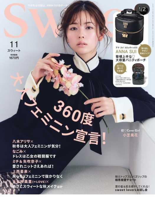今回の「sweet」11月号では、秋らしい落ち着いたトーンと洗練されたメイクで、小芝の持つ清楚な魅力と大人の女性らしさが絶妙に融合。透明感のある肌と穏やかな表情が誌面いっぱいに映え、季節感あふれる仕上がりとなっている。