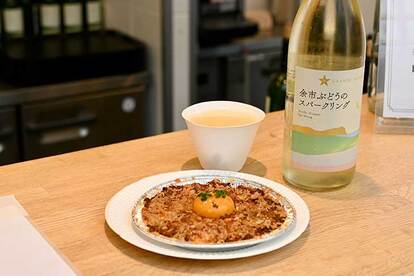 地元・三重の猪を使ったジビエな一皿は、パリから来訪した『PAGES』の手島シェフによる「月見ドリア 猪ミートソース」。臭みのない猪のミートソースとごはんに、卵をとろりと絡めれば、それぞれの旨味が優しく混じり合います。普段食べられない味に出会えるのも、名店シェフのフェスならではですね。