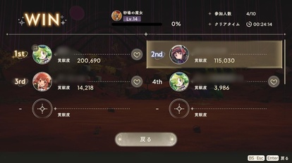 勝利後に貢献度が表示される。これも目標のひとつになる。