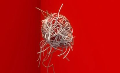 その後、まるで麺のようにスルスルッとほぐれることで、そういった感情からの解放とか浄化とかを描いているらしい。
