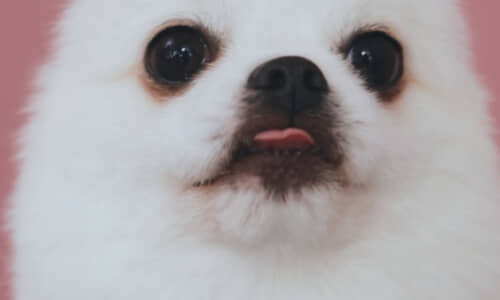 撮影はプロのカメラマンに依頼したそうで、ピンクの背景に浮かび上がる真っ白な毛並み、くりっとした目や口からのぞくピンクの舌など、とても愛らしい姿が写されているのですが……。