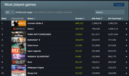 今回の記録更新の背景には、複数の人気タイトルが安定して多くのプレイヤーを集めていることが考えられる。『カウンターストライク2』や『Dota 2』『PUBG: BATTLEGROUNDS』といった、長年にわたり同時接続者数ランキングの上位を維持する定番タイトルが、引き続きプラットフォーム全体の基盤を支えている。