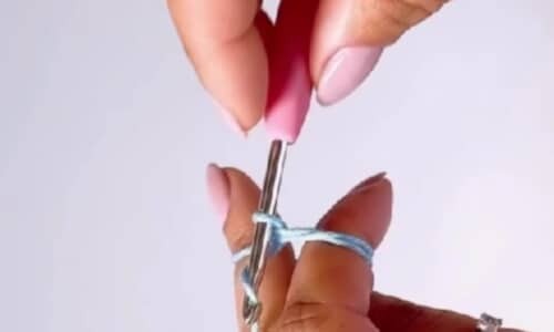 まず、毛糸の端を指に巻きつけ、小さな作り目(マジックリング)を形成。そこから鎖編みを6目してリングに編み付けることを8回続けたら、作り目の糸をキュッと引き締めておきましょう。これで1段目は完成です。