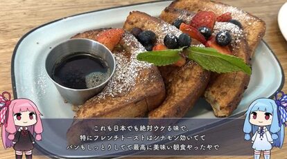 選んだサンドイッチとフレンチトーストはどちらも大当たり。日本でも絶対ウケる味だったそうです。どちらも2300円ほどだったので、朝食だけで約7000円位かかりました。「円安がにくい」とシャルさん。