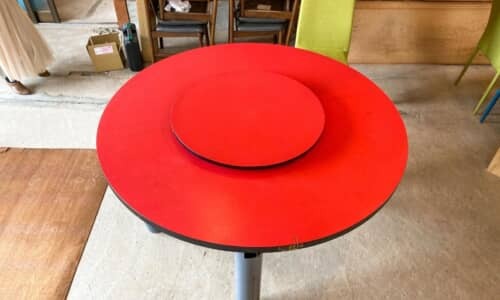 今回の投稿では、「『どうせ捨てるから』と譲りうけた」という、「取り壊し予定の空き家にあった真っ赤な中華テーブル」を独自のセンスで再生。テーブルは中華料理店で見かけるような、食卓の中央に料理を置くための回転台が付いたものです。もともとは鮮やかな真紅で、中華料理にぴったりなインパクトのある色味でした。