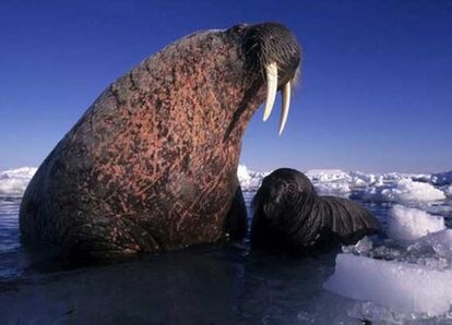 セイウチの体長は270-360 cm、体重500-1,200 kgと大型。皮膚には体毛が無いものの、厚い脂肪で覆われ寒冷地での生活に適応している。口の周りには堅い髭が密集する。この髭は海底で獲物を探す際に役立つ。雌雄共に上顎の犬歯(牙)が発達し、オスは100cmにも達する。この牙はオス同士の闘争に用いる、外敵に対する武器、海底で獲物を掘り起こす、陸に上がる際に支えにする等の用途がある。またこの牙は生涯を通じて伸び続ける。
