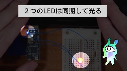 むき出しになったSDカードリーダー。次に「アクセスランプも基板から出してあげよう」と配線を接続します。するとブレッドボード上でもLEDが光るようになりました。前より目立つようにはなりましたが、ここからさらに“SDカードのがんばり”がもっとわかりやすく伝わるようにしていきます。