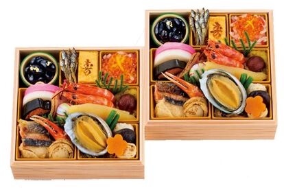 今回販売されるコラボおせち「誓」は個食タイプ2人前で、価格は2万4300円となっている。紅白なますや数の子といった定番のメニューのほか、合鴨照焼、アワビ旨煮など全24品目の料理が楽しめる。