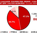 近年、日本の季節が「四季(春夏秋冬)」から「二季(夏冬)」になってきていると感じるか尋ねたところ、「とても感じる」「やや感じる」が合計86.8%という結果になりました。