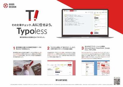 グッドデザイン賞は公益財団法人日本デザイン振興会が主催する世界的なデザイン賞で、Typolessのシンプルでわかりやすいデザインや新聞社ならではの独自性、専門知識や信頼性に基づいたサービスが評価されました。